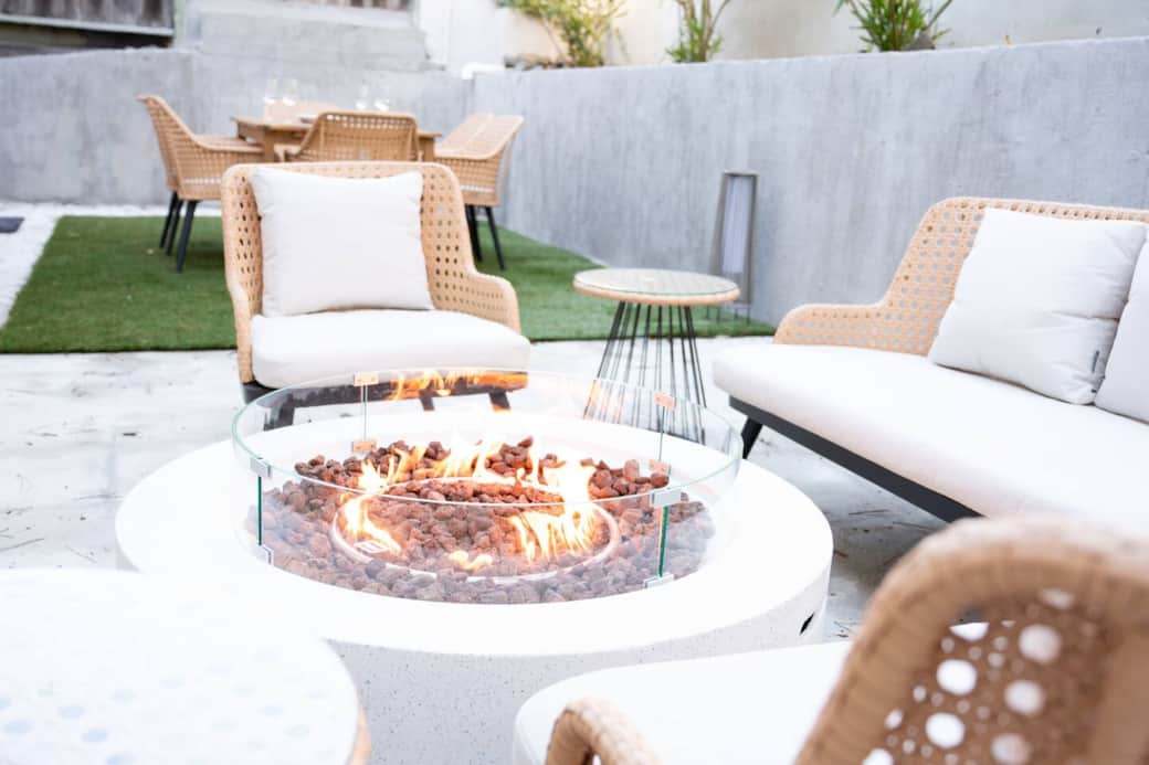 The lower level opens directly to the backyard patio and firepit area, great for outdoor dining or evening s’mores.